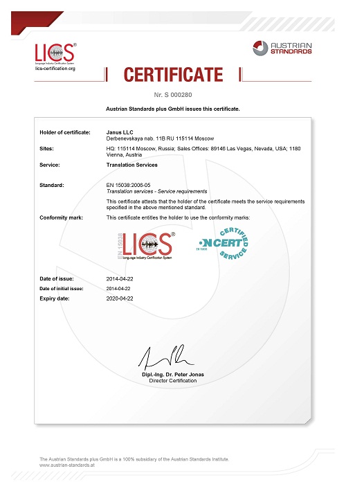 Im April hat sich Janus erfolgreich der Zertifizierung nach der europäischen Norm 15038:2006-05 unterzogen.