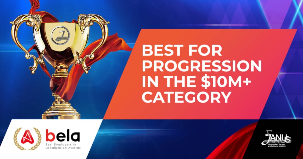 Für Janus Worldwide ist es eine große Ehre, mit einem der BELA Awards 2021 (Best Employers in Localization) ausgezeichnet worden zu sein. Janus wurde in der Kategorie der Unternehmen mit mehr als 10 Mio. Dollar Umsatz als „Best Language Service Provider for Career Progression“ ausgezeichnet.