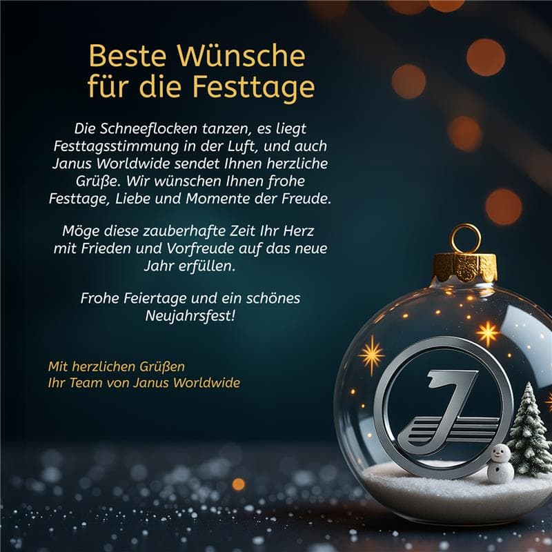 Die Schneeflocken tanzen, es liegt Festtagsstimmung in der Luft, und auch Janus Worldwide sendet Ihnen herzliche Grüße. Wir wünschen Ihnen frohe Festtage, Liebe und Momente der Freude.