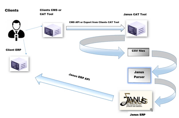 Als international tätiges Unternehmen ist selbstverständlich auch Janus Worldwide mit diesen Anforderungen konfrontiert. Dies betrifft insbesondere die Anforderung, die Computersysteme von Janus Worldwide (ERP und TMS) in die Systeme der Kunden zu integrieren (TMS, CMS und Webportale). Es besteht zum Beispiel verstärkt Bedarf an Integrationsmöglichkeiten mit Across, memoQ, Welocalize Junction/Pantheon, RWS/Moravia, Lionbridge, Morningside, GlobalLink und Odnoklassniki. Dabei ist zu erwähnen, dass die Initiative in einigen Fällen von Janus Worldwide aus ging. Wir sind bemüht, mit den aktuellen Anforderungen Schritt zu halten und suchen stets nach weiteren Möglichkeiten, die Routineaufgaben unserer Mitarbeiter in der Projektabwicklung zu vereinfachen und Prozesse zu automatisieren.