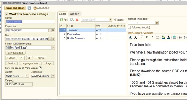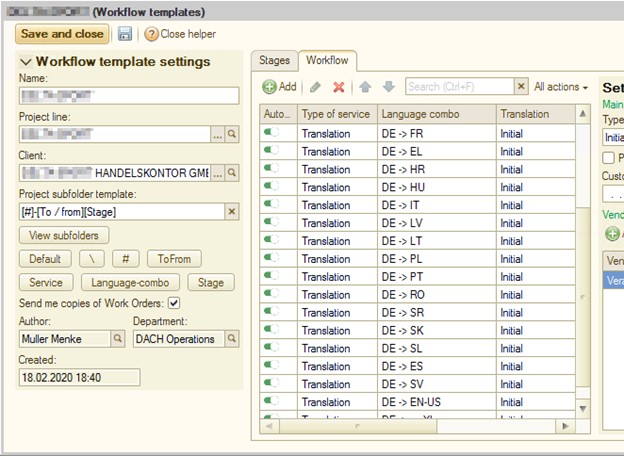 In unserer Arbeit haben wir es oft mit Kunden zu tun, die Übersetzungen von Texten in mehrere Sprachen gleichzeitig benötigen. Gleichzeitig müssen die mit dem Projekt verbundenen Kosten in unserem Buchhaltungssystem (ERP) erfasst und gespeichert werden. Zu diesem Zweck werden spezielle Auftragsdokumente (Work Order documents) ausgestellt und im ERP gespeichert. Die Auftragnehmer erhalten alle Aufträge und entsprechendes Arbeitsmaterial zusammen mit den jeweiligen Auftragsbestätigungs-E-Mails.