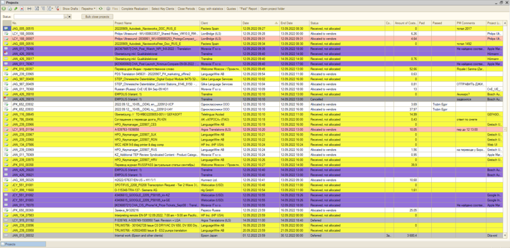 The GTP is a handy tool for tracking the progress of translation projects. The system displays the necessary information about the volume, cost, and current status of an order. It is no secret that, with project managers high workload, it is possible that some deadlines will slip out of control. The GTP system helps prevent such situations.