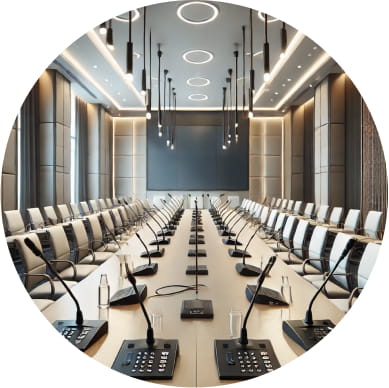 You can conveniently hire the technical equipment you need. From equipment for simultaneous interpreting, any type of presentation, conference systems, voting systems and tour guide systems to technical support for audio and video conferences – with Janus, your event will be successful!