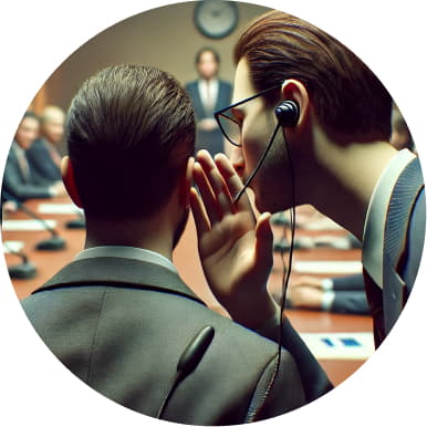 Whispered interpreting, also known as chuchotage, is a quiet oral translation for two or a maximum for three people. Whispered interpreting is particularly common in court hearings, but is suitable for any short-term communication and does not require the use of technical aids. Janus Worldwide offers whispered interpreting in all areas, including conferences, court hearings, official meetings and in the medical field.